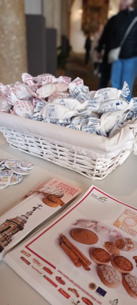 Los visitantes de todas las partes del mundo que acuden a los Reales Alcázares de Sevilla, durante los fines de semana previos a la Navidad, reciben estos días mantecados y polvorones de Estepa.